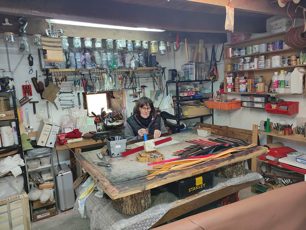 Après le départ à la retraite de Patrice, l’atelier a pris un nouveau tournant : en 2021 Gina a transféré son activité à Bugeat, où elle continue à travailler le cuir avec passion, dans l’atelier rebaptisé Le Cuir d’Émile V.
